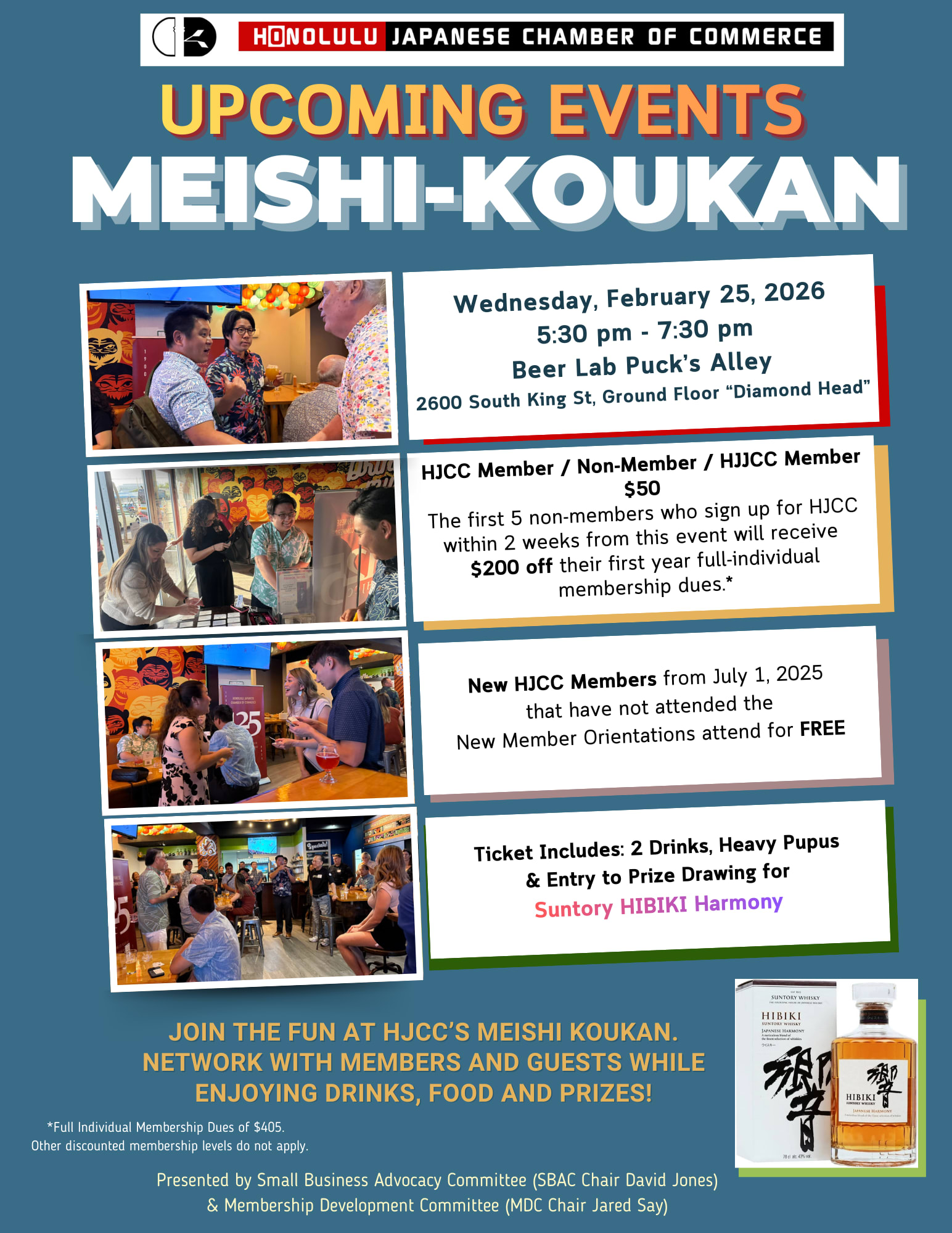 Join the Fun at HJCC’s Meishi Koukan! Presented by the Small Business Advocacy Committee (SBAC) & Membership Development Committee (MDC) Wednesday, February 25, 2026 5:30 pm - 7:30 pm Beer Lab Puck’s Alley 2600 South King St, Ground Floor “Diamond Head”