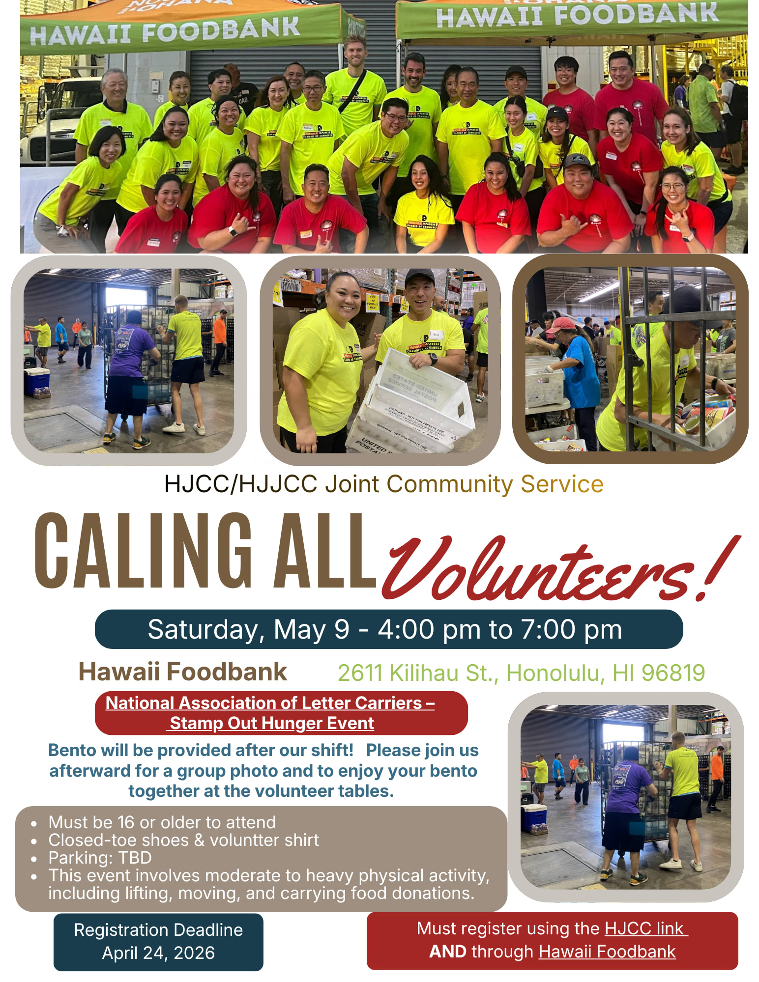 Registration: Must register using HJCC link AND through Hawaii Foodbank