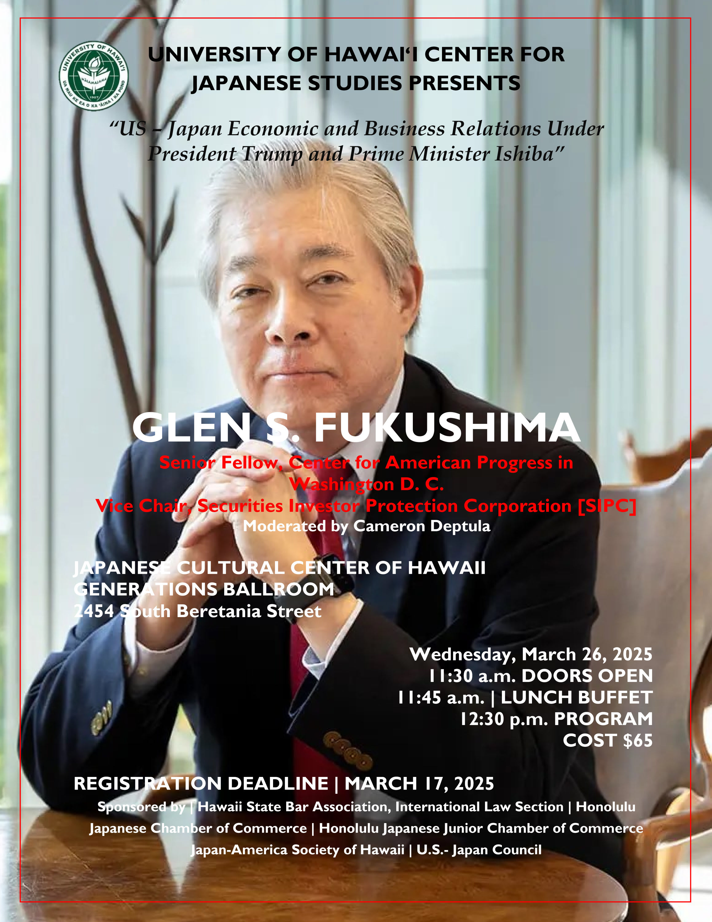 University of Hawai`i Center for Japanese Studies Presents GLEN S. FUKUSHIMA, Senior Fellow, Center for American Progress in Washington D. C.Images